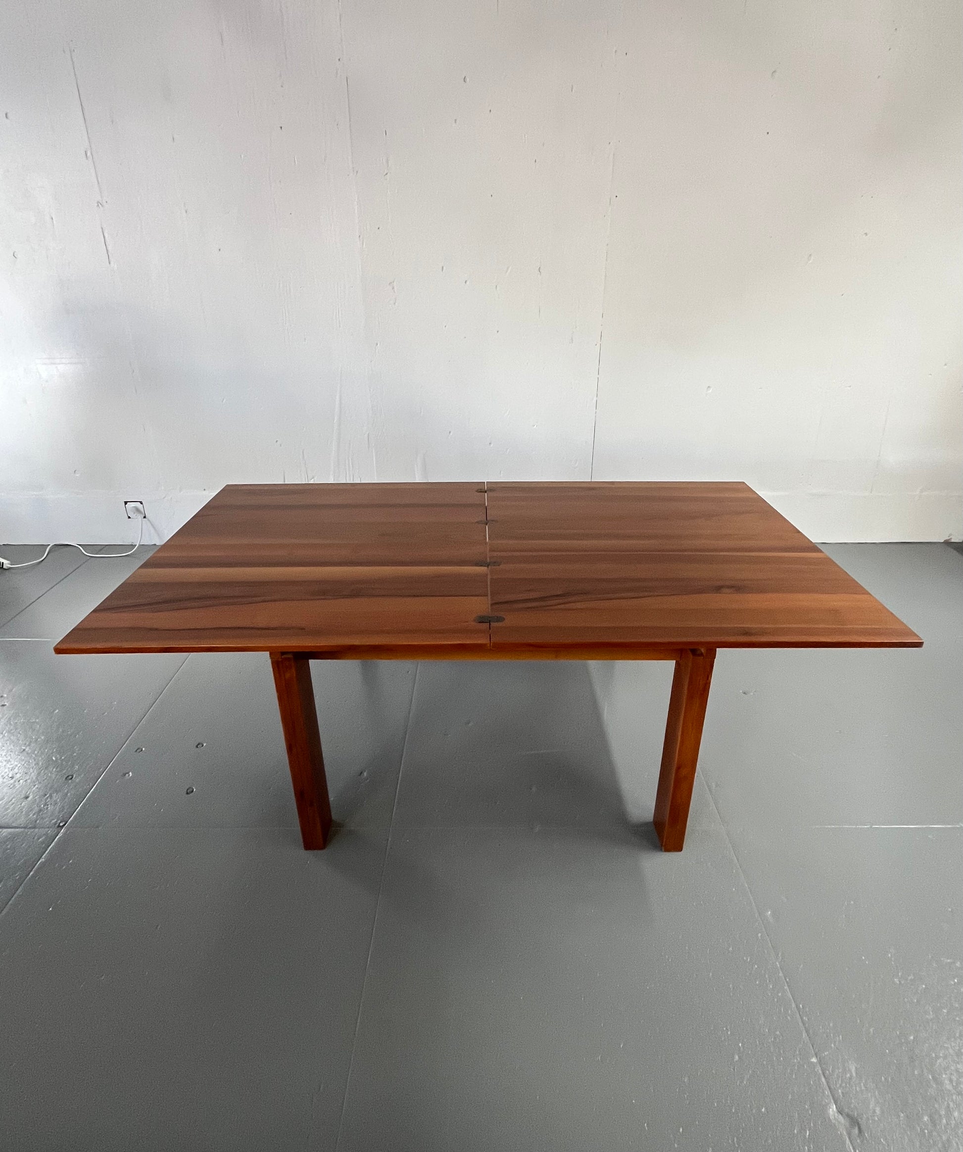 Walnut dining table that coverts from a (4) seater to almost a (10) seater when flipped open.